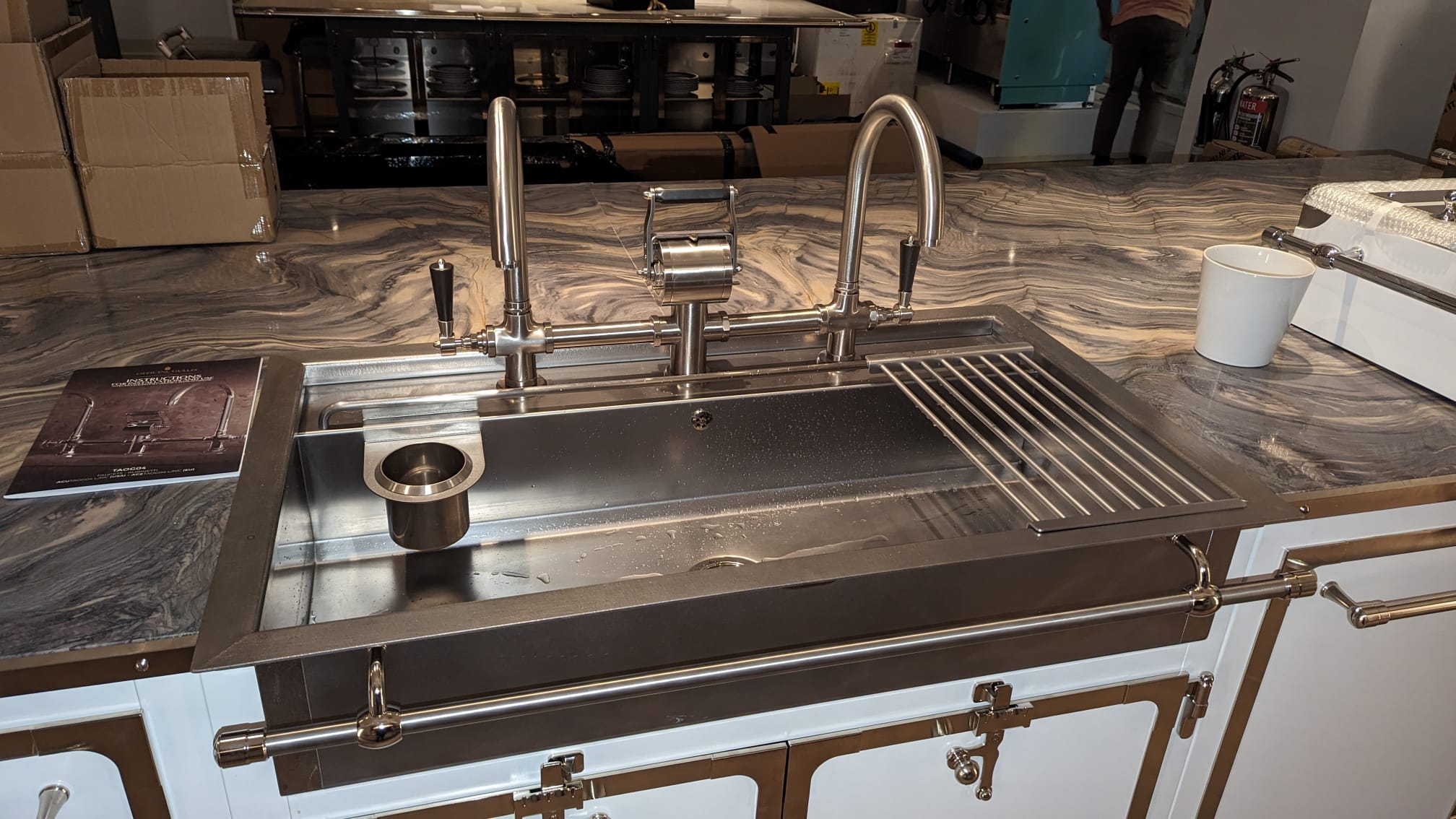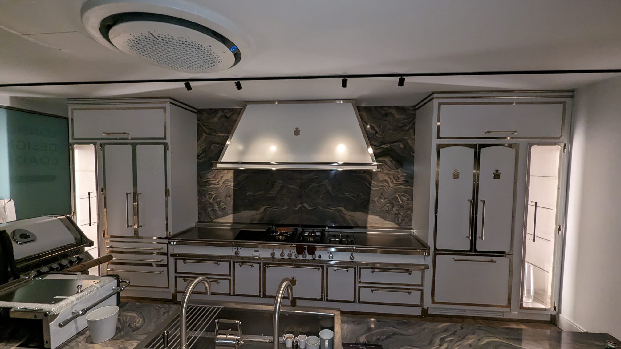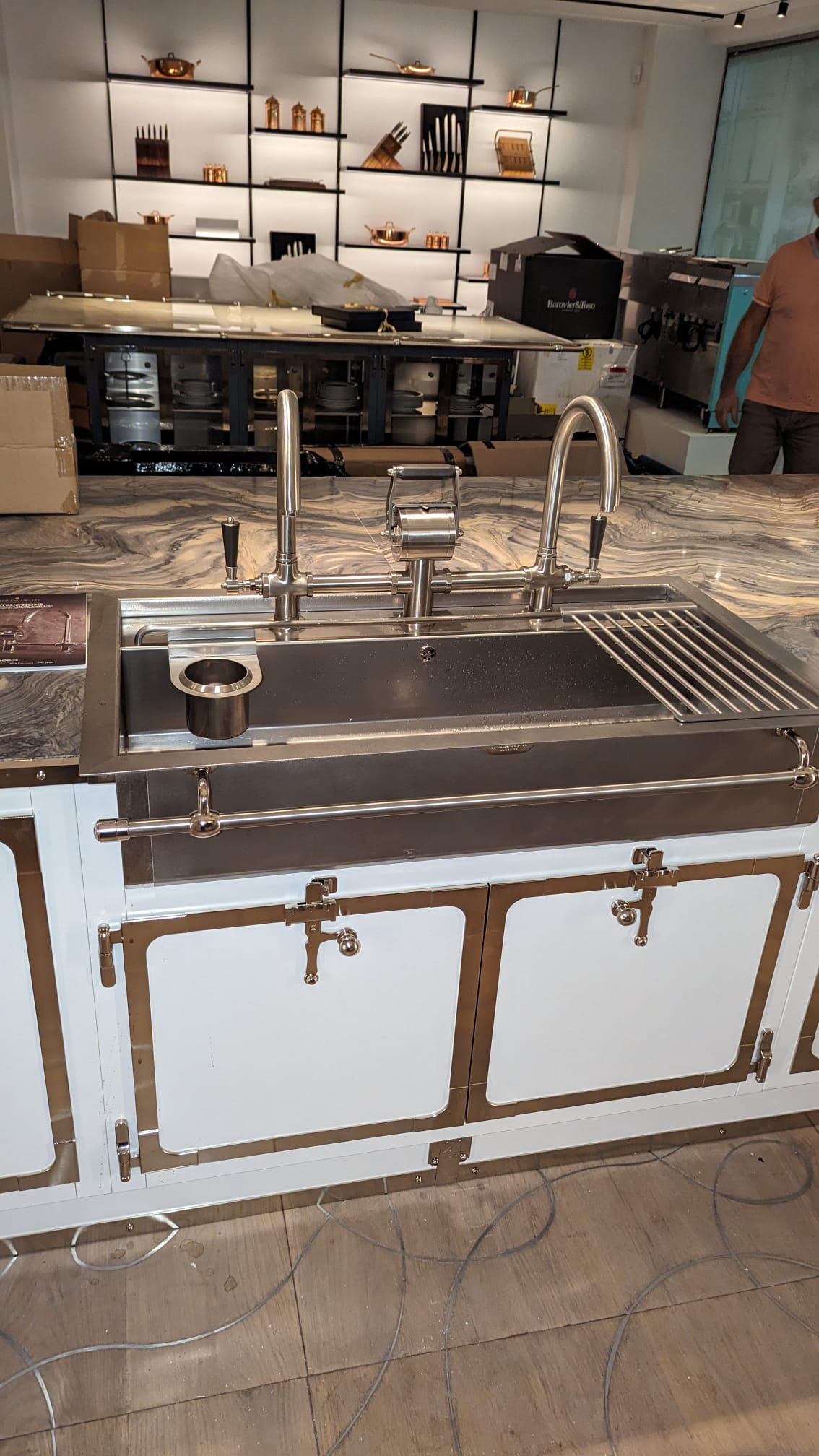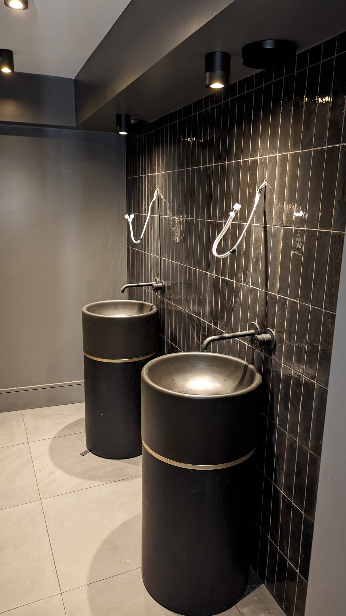 The new plumbing installation for the Officine Gullo showroom is finished to the highest standards of craftsmanship and precision. Exposed elements are executed in premium materials with a flawless brushed and polished metal finish, ensuring durability while enhancing visual elegance. The overall finish complements the brand’s iconic aesthetic—refined, timeless, and uncompromising in quality—while integrating discreetly